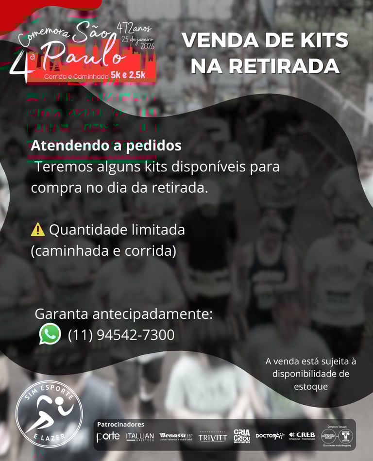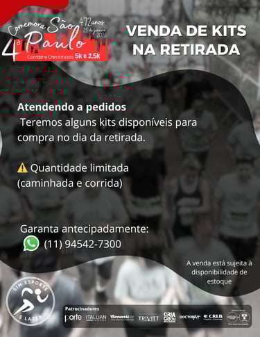 Fique atento as datas, locais e horários para a retirada do seu kit para o nosso evento